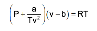 Donde la constante a provee una corrección para las fuerzas intermoleculares y la constante b es una corrección para el tamaño molecular finito y su valor es el volumen de una mol de átomos o moléculas.